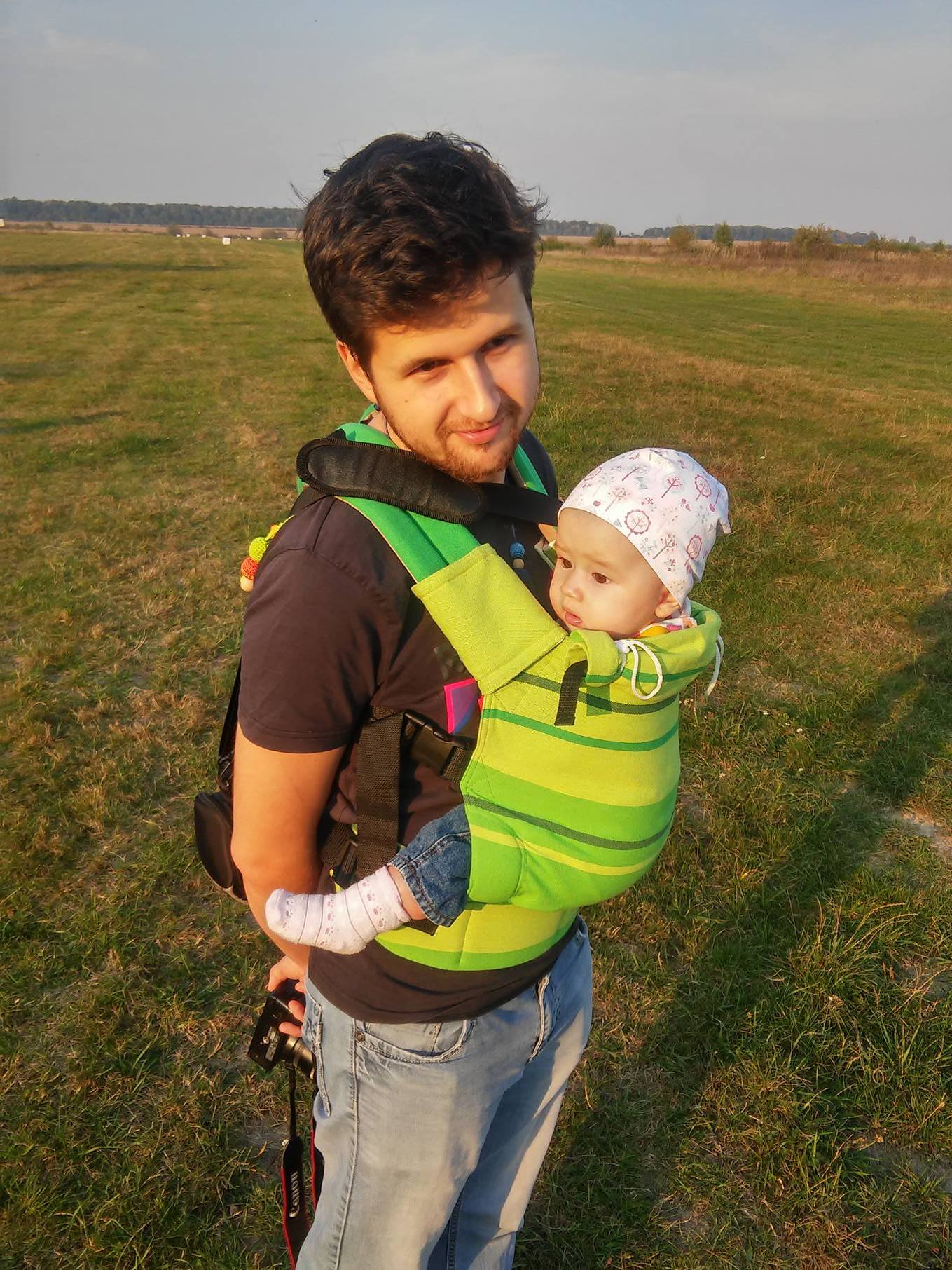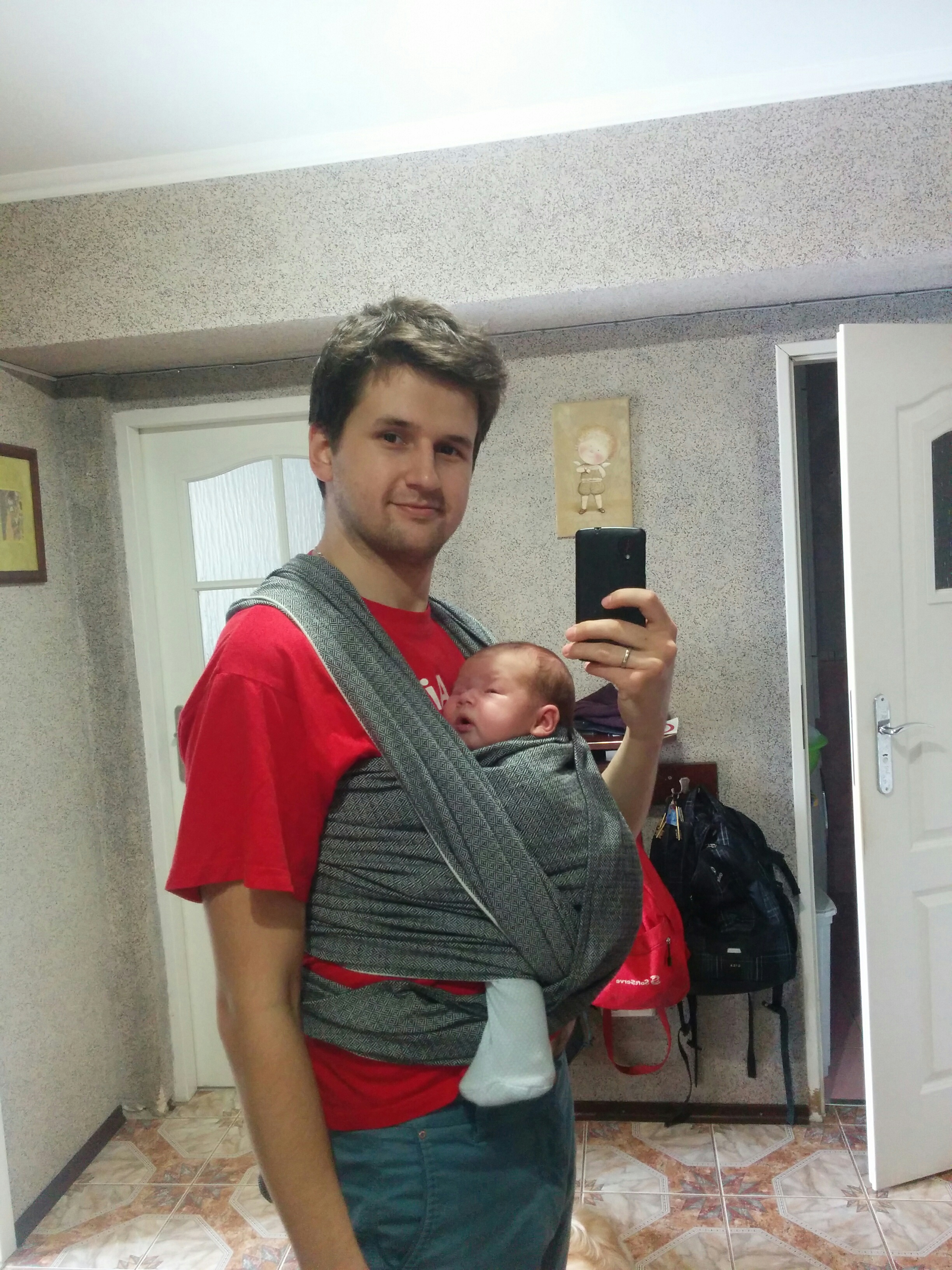 До самого народження малюка слінг був скоріш просто корисним і гарним подарунком для друзів і рідних. Та ближче з ним ми вже познайомились, коли принесли додому нашу малечу. Слінг чекав вдома і вперше його ми випробували десь в місяць. Перша спроба була вдала і здавалось, що так буде завжди. Але через гіпертонус м’язів наші наступні спроби замотати дитину у слінг зазнавали поразки. Спочатку звинувачували себе у затягуванні процесу, та все ж просто відпустили ситуацію і дали усім час.