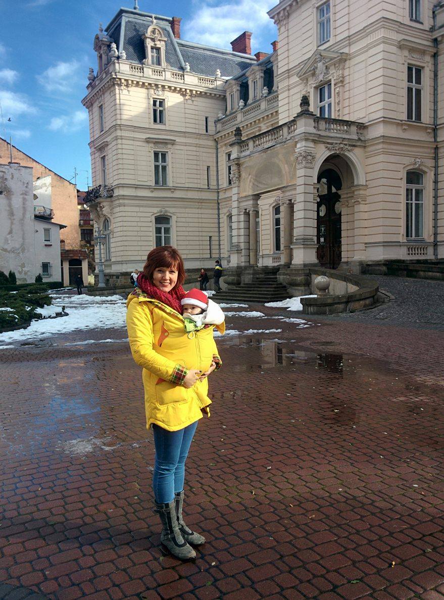 Дякуючи подрузі, яка нам його позичила і Наталі Орел, слінгоконсультанту у Львові, яка навчила правильно ним користуватись, життя набуло нових барв. Та ми так тішились, що малій комфортно в слінгу з кільцями, що боялись йти далі і пробувати знову її мотати в шарф. Хоч плече і спина грізно просили щось міняти.