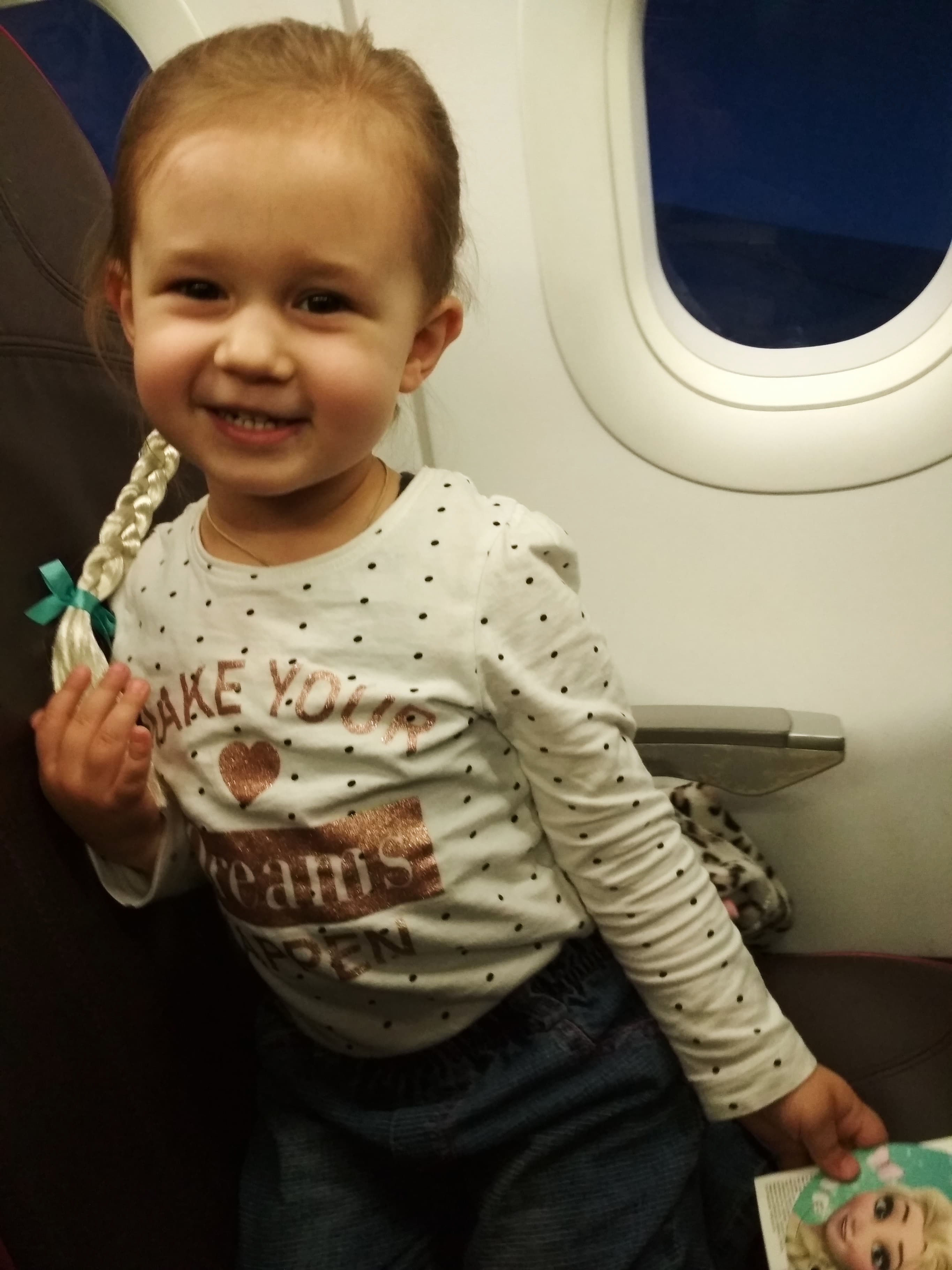 Врахуйте скільки часу триває переліт і відносно до цього постарайтеся продумати заняття для малюка. Не спішіть заходити у літак першими, якщо у вас немає пріоритету, спокійно почекайте, поки основна маса людей зайде і ви зможете спокійно без штовханини зайти та розкласти свої речі. А малюк не буде хвилюватись, коли ж ми полетимо 😉